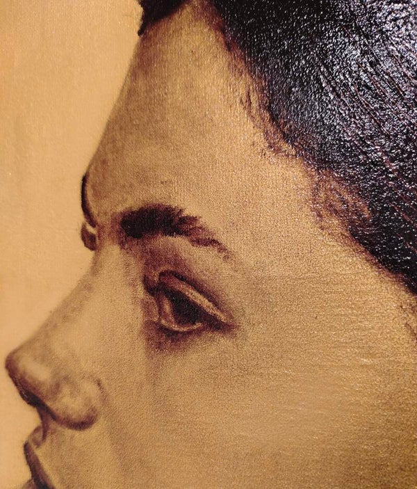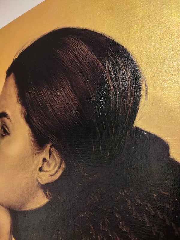 Pintura acrilica metalizada y óleo sobre lino belga encolado a Contrachapado.